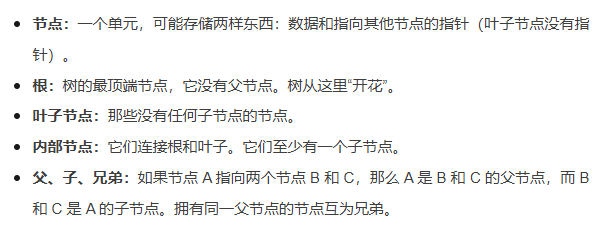 在计算机科学中,树用来模拟一种层次结构。数据被安排在节点中,这些节点按层次链接。以下术语定义了任何树结构: