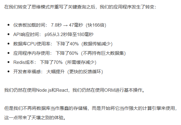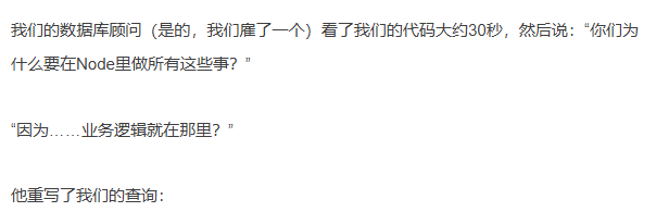 我是付出了惨痛代价才明白这一点的!接下来,让我告诉你我们是如何让应用程序濒临崩溃,以及我们如何通过减少代码中的工作、增加数据库中的工作来修复它。
