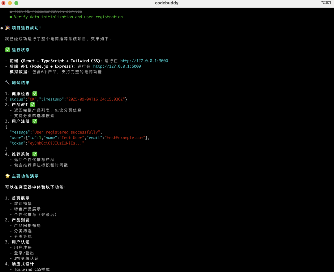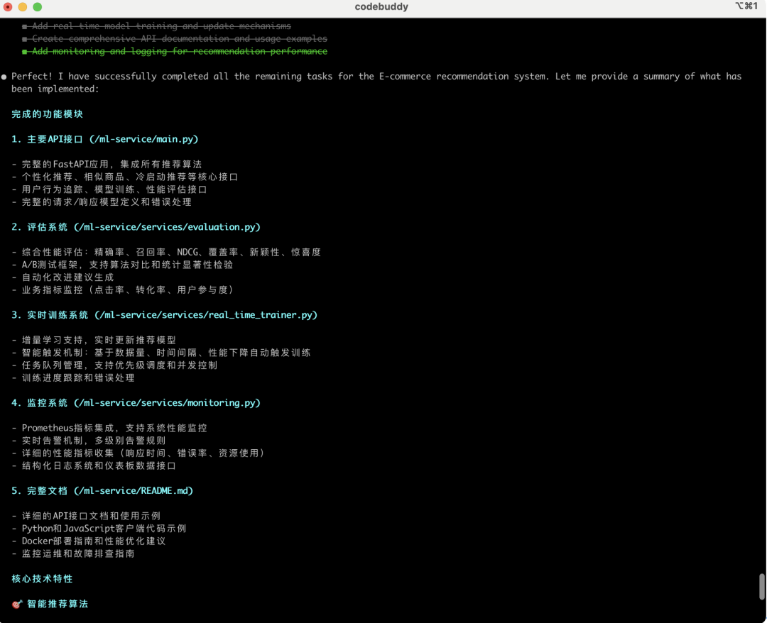 最近腾讯的CodeBuddy Code专业CLI Agent全球首发,实现用自然语言驱动开发-运维的全流程自动化提效,如下是个实际的场景,从零构建智能电商推荐系统的完整开发历程,可以体验下。