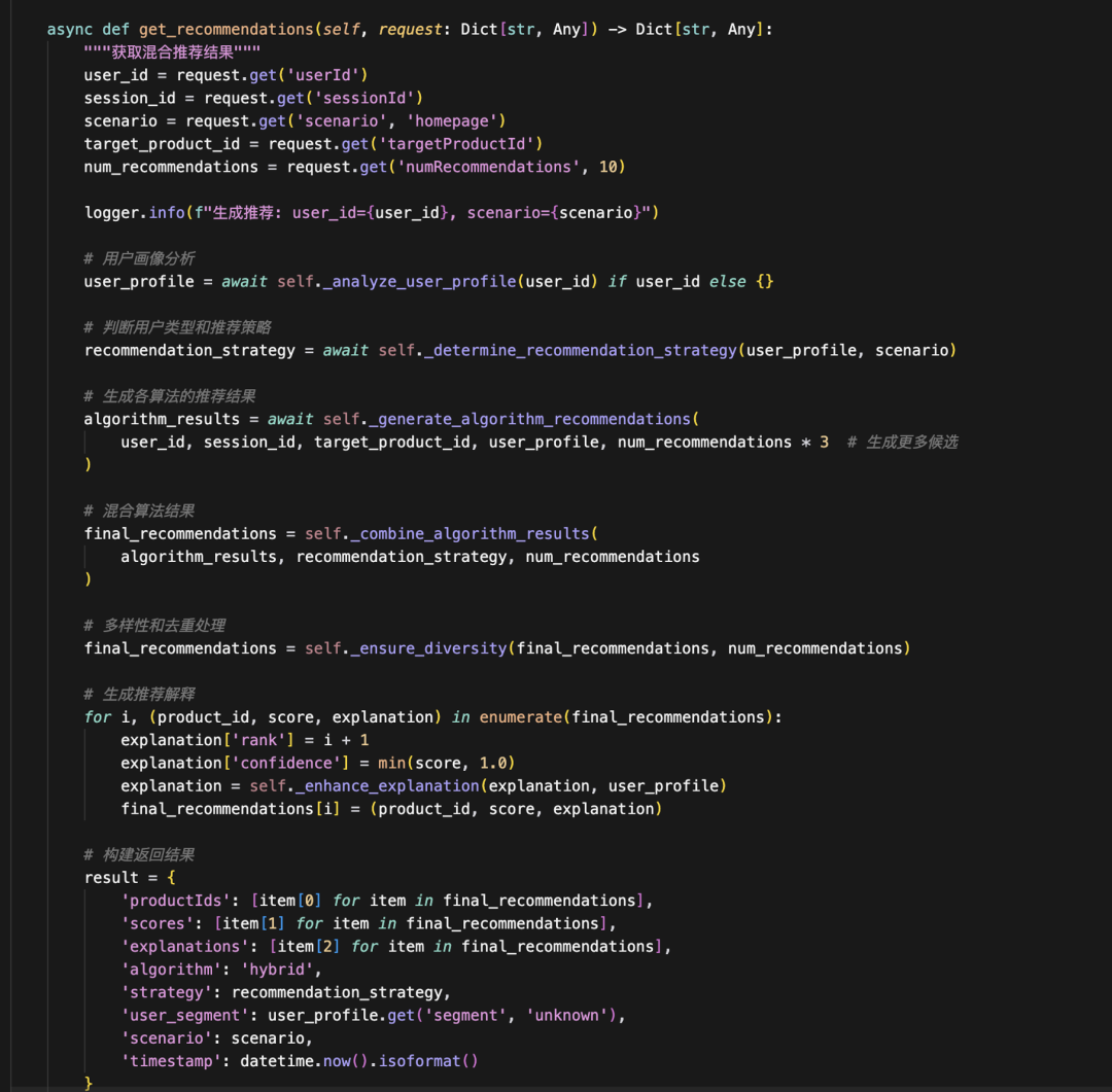 // 调用推荐引擎