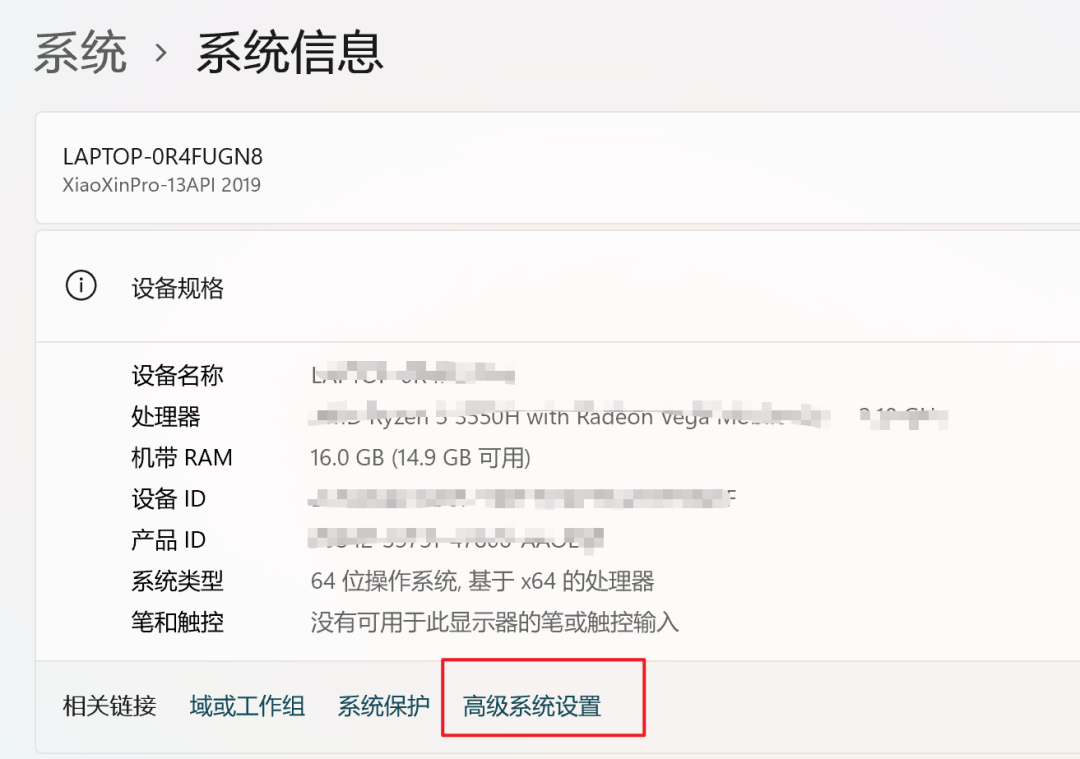 找到系统信息,高级系统设置:
