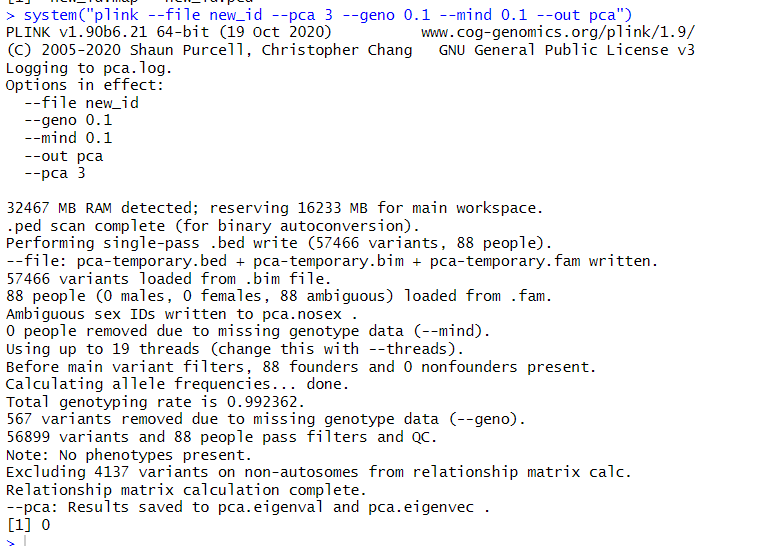 system("plink --file new_id --pca 3 --geno 0.1 --mind 0.1 --out pca")