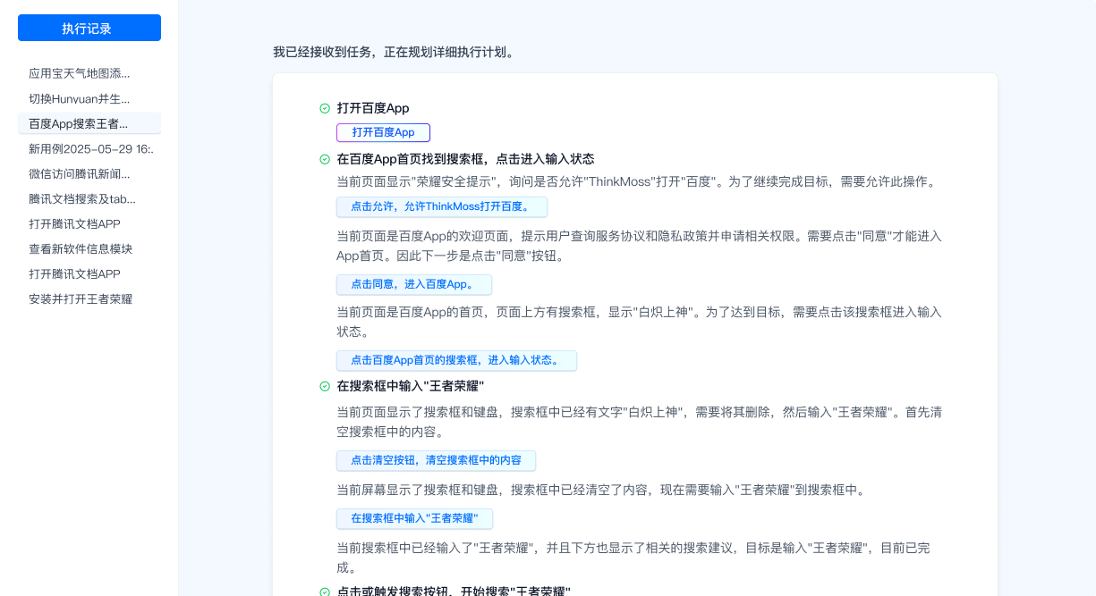 全程可视化 AI 思考与执行过程。平台不仅展示AI的操作步骤,还会呈现其背后的推理逻辑和决策依据,使你能够理解 AI 的“思路”,而不仅仅是看到结果。