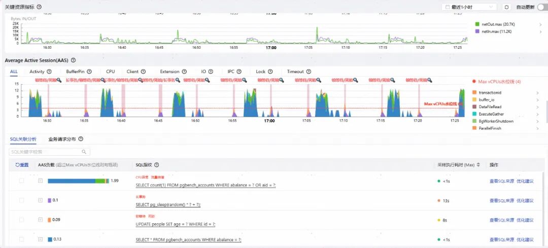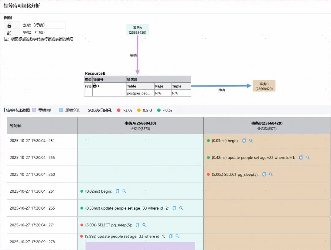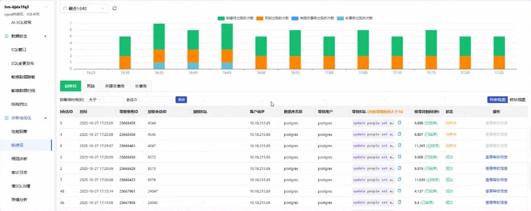 1 数据库锁与阻塞问题分析:借助软件对每个数据库实例的监控图表,可以深入识别大事务、长事务、事务未提交等常见数据库故障诱因。同时,通过锁分析功能,可以进一步发现未提交事务、长事务及锁等待,为DBA在复杂场景下的性能诊断与根因定位提供了有力支撑。