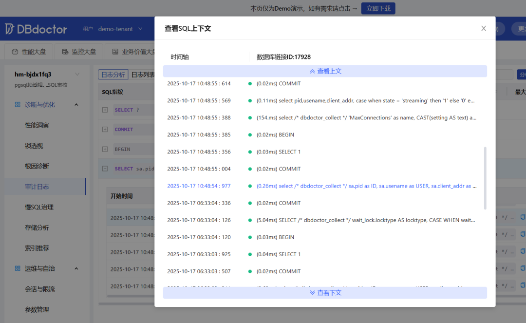 DBdoctor数据库运维管理软件,是一款数据库性能诊断集合SQL审核和SQL问题跟踪的软件产品,我们针对如下场景进行测试: