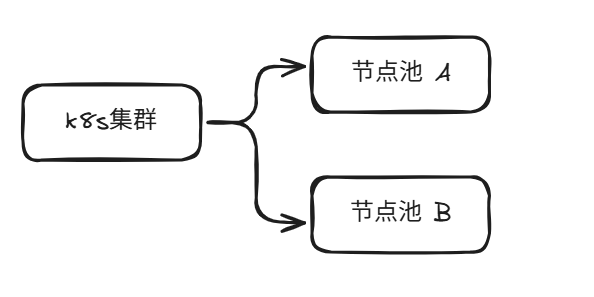 在一个k8s集群中,可以划分很多节点池,设置对应label或者是污点,从而能对业务进行精细化的调控,大致架构如下