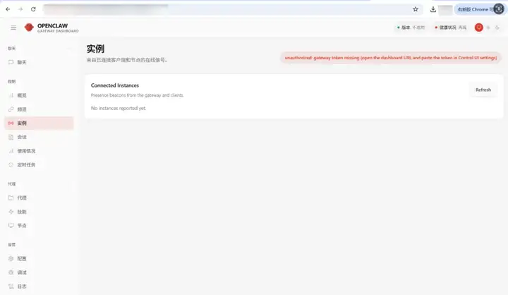 Instances 页面,未完成鉴权时会出现 unauthorized 提示
