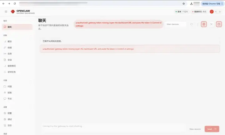 Chat 页面,控制面板未授权时无法直接使用会话能力