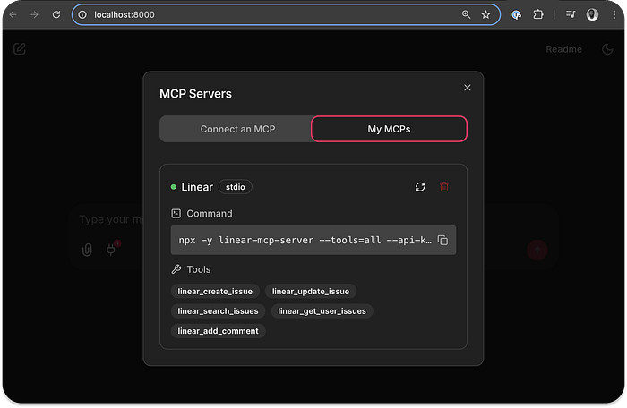 与 Chainlit 类似,Mastra 提供了标准化方式来连接 MCP 服务器,从而通过 stdio 或 SSE 连接访问大量工具。