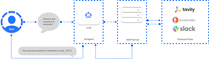 当然,你也可以直接将工具集成到 AI 助手中,但如果系统包含多个 多智能体(multi-agent),执行的任务多且复杂(如处理邮件、网页抓取、财务分析、实时天气查询等),直接集成会导致管理混乱且安全风险高。