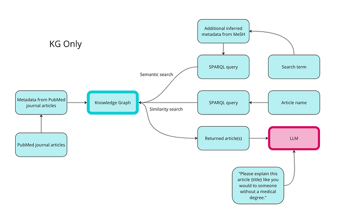 这些结果与我们从向量数据库中得到的结果相似。每篇文章都与口腔肿瘤相关。知识图谱方法的好处在于我们能得到可解释性——我们确切知道为什么这些文章被选择。文章 2 被标记为“牙龈肿瘤”和“唾液腺肿瘤”;文章 4 和 6 都被标记为“口腔肿瘤”。由于文章 2 被标记了两个与我们查询术语匹配的术语,因此它被排名为第一。