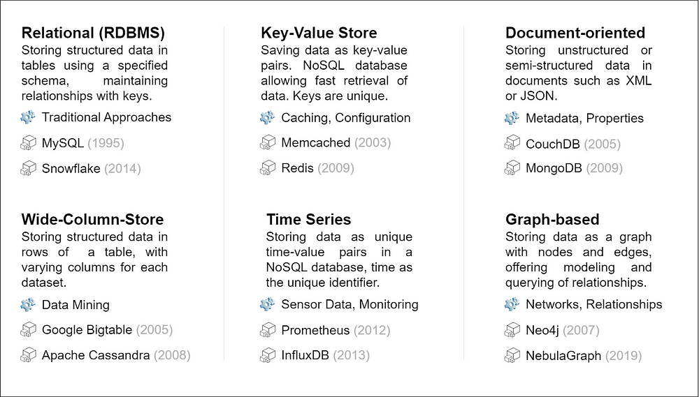 各类重要数据库的典型用途与代表产品