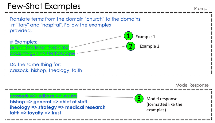 任何足够精细的模型都可以基于“零-shot”提示回答简单问题,而无需基于示例进行学习。这是基础模型的一个特点。它们已经从预训练中获得了数十亿次学习的“提示”。不过,当试图解决复杂任务时,如果提供示例,模型会产生更符合你需求的输出。