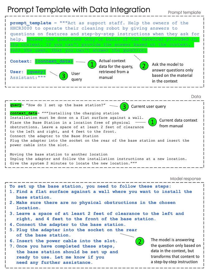 在上面的示例中,使用对话历史,模型可以将用户的回答 “Yes, please!” 处理为一个完整的陈述:“Yes, please, give me a step-by-step instruction to set up the charging station”(是的,请给我一个设置充电站的逐步说明)。