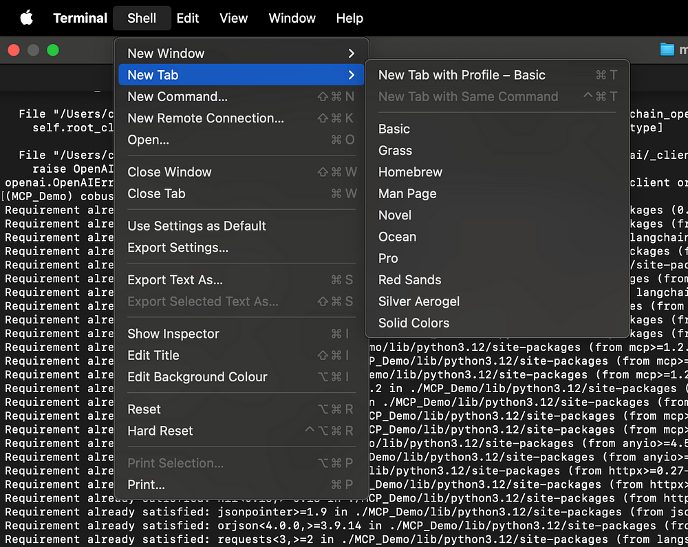 python3 -m venv MCP_Demo然后运行以下命令以激活(进入)该虚拟环境: