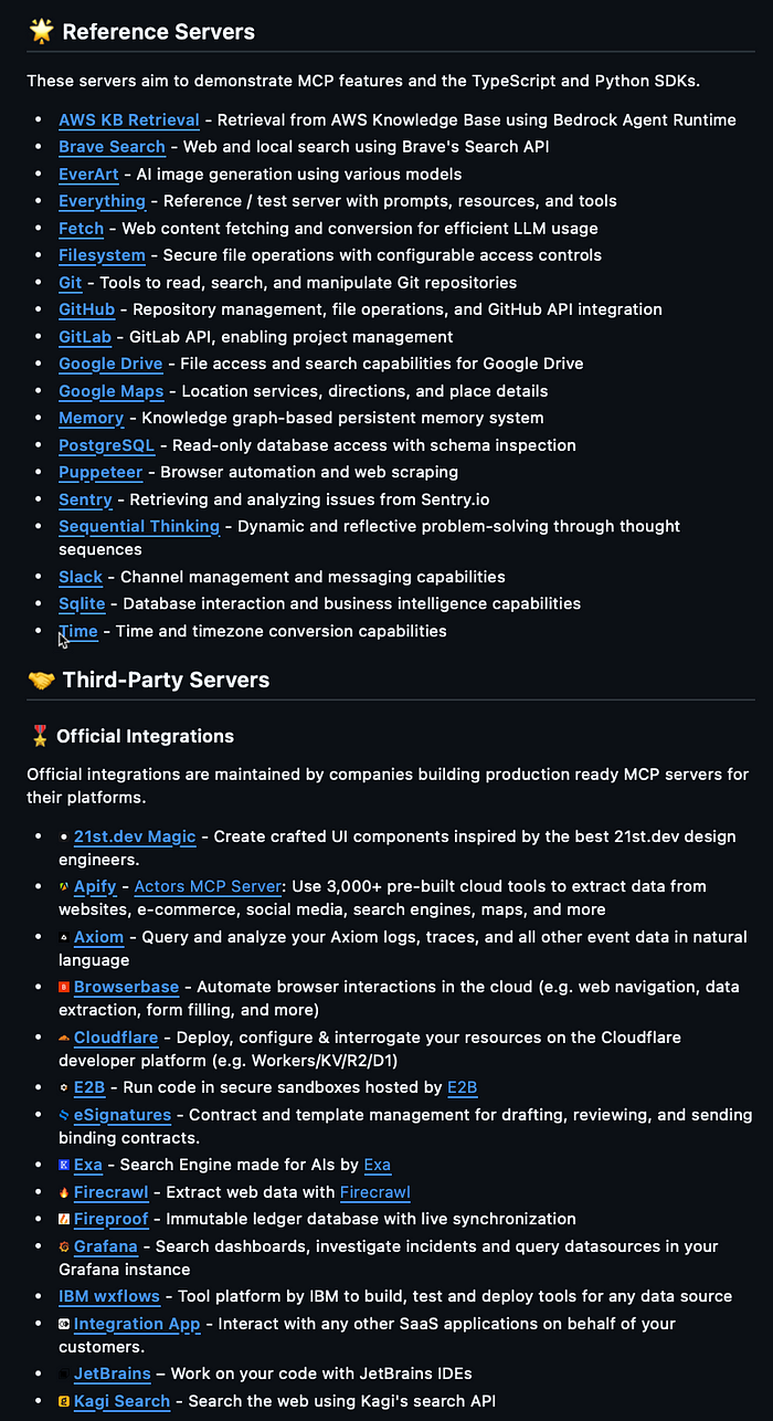 开发者可以使用 MCP 构建可复用的、模块化的连接器。同时,已有为主流平台构建的预设服务器,正在形成一个由社区驱动的生态系统。