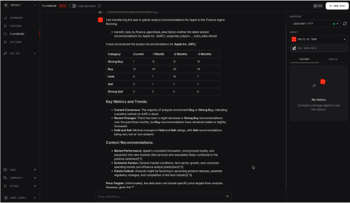 🎉 恭喜你!👏 你已经构建了你的第一个 AI 智能体,它能够为指定公司提供财务洞察和摘要,并以表格形式呈现。