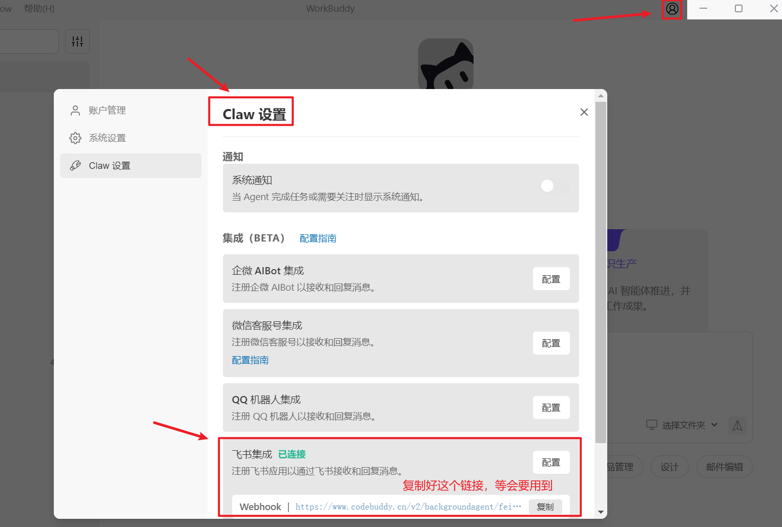 本章将指导您完成 WorkBuddy 的基础配置,获取后续对接飞书所需的关键凭证。