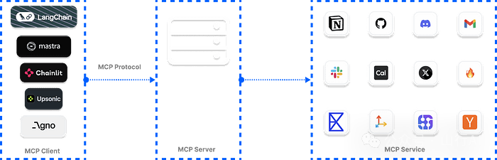 在此图中,我们将智能代理系统所需的多个工具通过 MCP 服务器整合接入,从而为用户提供更一致、更流畅的使用体验。MCP 的方式使得工具的集中管理与安全控制更加容易。