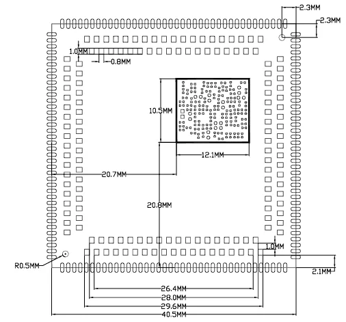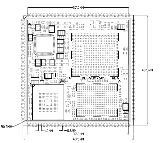 IDO-SOM7609-S1核心板背面尺寸,如下图所示:
