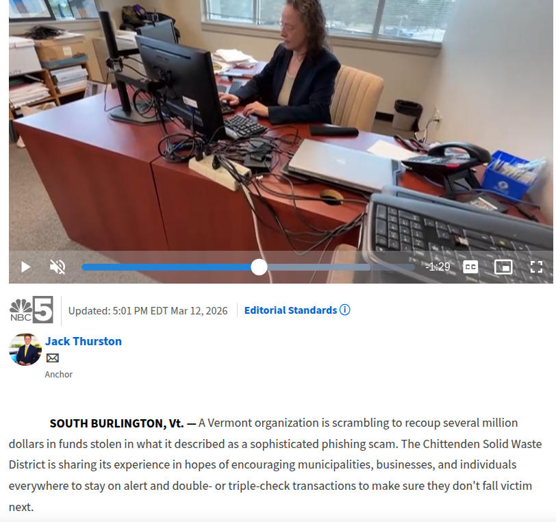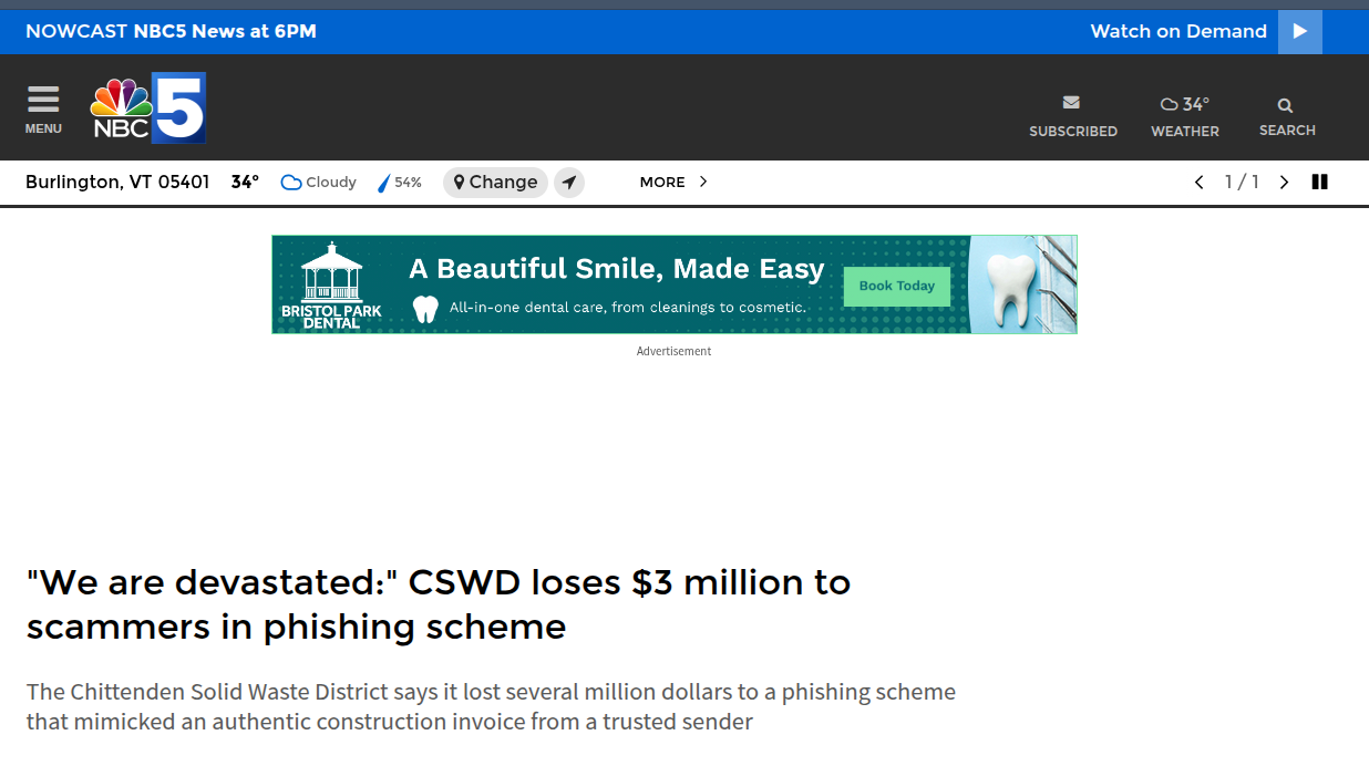 在数字化转型的深水区,公共部门与私营企业的财务交互日益依赖电子邮件系统。然而,这一高效通道也成为了网络犯罪分子的温床。商务邮件妥协(Business Email Compromise, BEC)攻击,作为一种针对性强、隐蔽性高且经济损失巨大的网络犯罪形式,正呈现出产业化与智能化的演进态势。2026年3月,佛蒙特州奇滕登固体废物区(CSWD)遭受的300万美元诈骗案,便是这一威胁的典型缩影。据NBC5新闻报道,CSWD在执行一项价值3800万美元的新回收设施建设过程中,因收到一封看似来自可信建筑合作伙伴的发票邮件,被诱导向欺诈者转账300万美元。这笔巨额损失约占项目总预算的8%,对机构的财务状况造成了毁灭性打击。