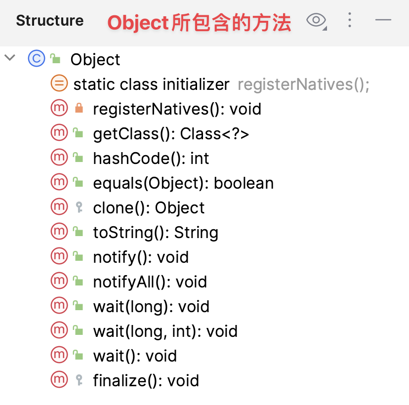 比如我们之前学过了 toString()、clone(),下面我们来学习一下 equalsI() 以及 hashCode() 方法,剩下的方法则会在后面的学习过程不断的接触!