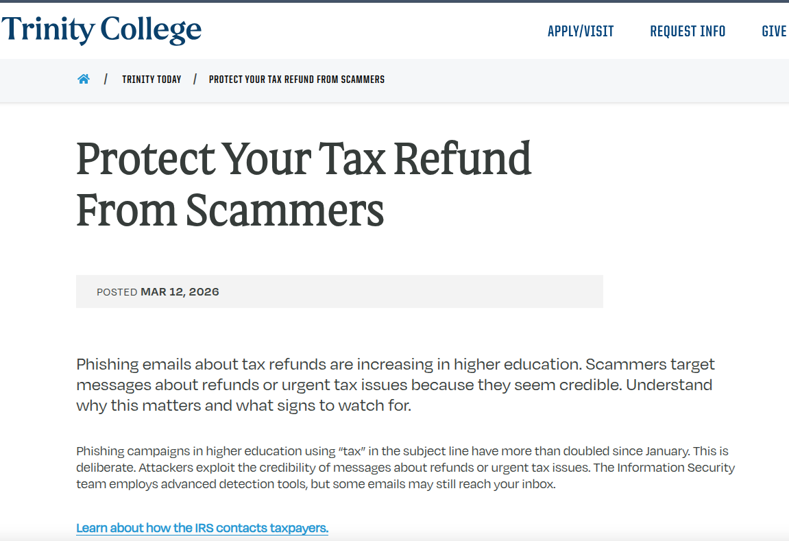 每年春季的报税季节,不仅是纳税人履行义务的周期,也是网络犯罪团伙活跃的高峰期。2026年3月,Trinity College信息安全团队发布的一则警报揭示了这一周期性威胁的新变种:针对高等教育社区的税务主题钓鱼邮件数量自当年1月以来激增超过一倍。这一数据并非孤例,而是反映了全球范围内网络攻击战术的显著演变。攻击者不再满足于广撒网式的低效攻击,而是将目光锁定在拥有高价值个人数据(如学生记录、教职工薪资信息、社会保障号码)的高校群体,利用税务退税这一高关注度话题作为诱饵,实施精准的社会工程学攻击。