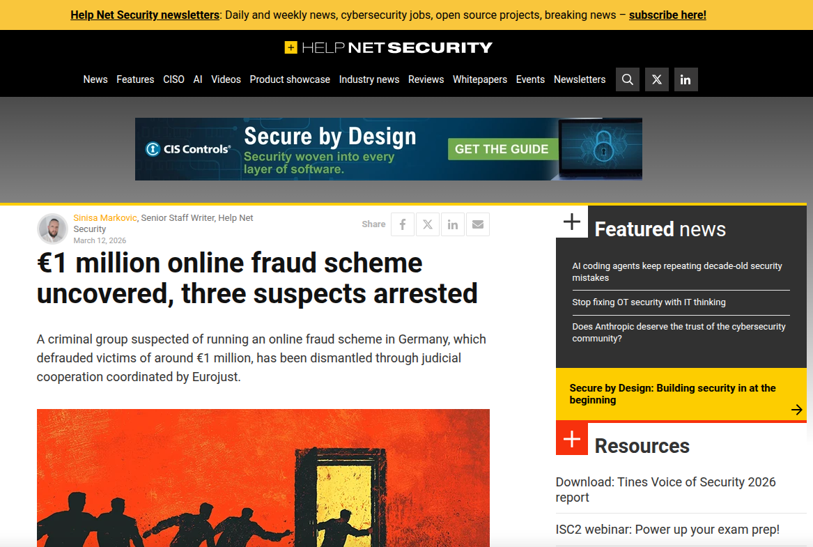 网络空间的主权边界模糊性,使得网络犯罪成为21世纪最具挑战性的全球性安全问题之一。传统的犯罪模式往往受限于物理距离与地域管辖,而网络钓鱼(Phishing)及其衍生的在线诈骗活动,则能够以极低的成本跨越国界,对目标国家的公民造成巨大的经济损失与社会恐慌。2026年3月12日,Help Net Security报道了由Eurojust协调的一次重大执法行动,德国当局在多国支持下,成功摧毁了一个专门针对德国居民实施大规模在线诈骗的犯罪集团。这一行动不仅抓获了多名嫌疑人,更关键的是捣毁了其背后的技术基础设施,切断了持续已久的非法资金流。