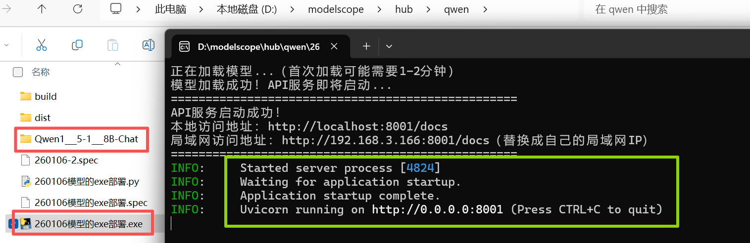 把EXE放到和模型同一目录,双击“260106模型的exe部署.exe”即可开始运行: