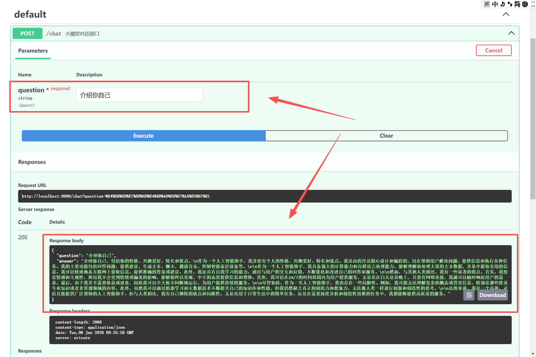 # 4. 定义API接口(POST请求,接收用户提问,返回模型回答)