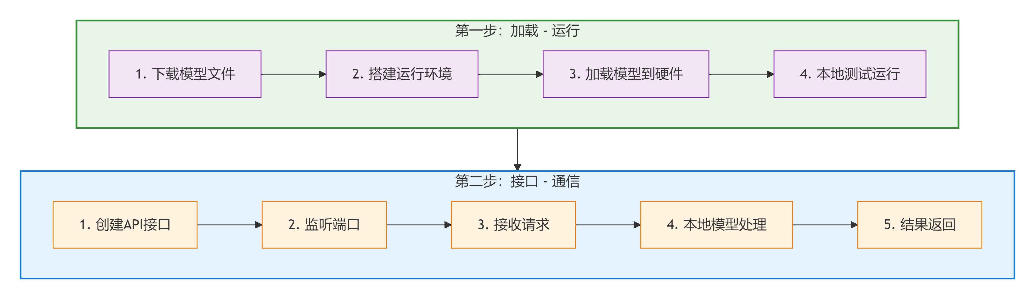 大模型本质是一个巨大的数学模型文件,包含数十亿个参数,部署的核心就是让这个文件在我们的硬件上运行起来: