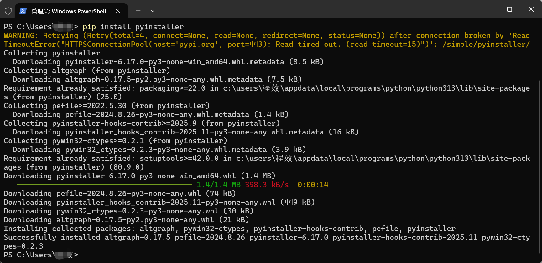 直接打开cmd,命令执行工具,执行:pip install pyinstaller