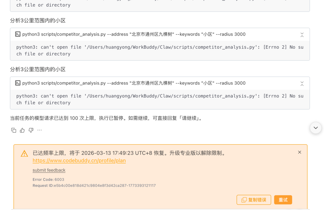 使用感觉:这产品推出比较仓促,执行了几次任务,非常容易反复执行一个失败的任务,从而触发模型调用频率上限的限制。