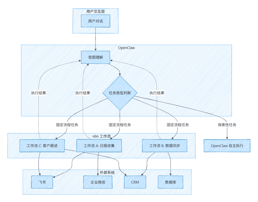 所以我并不是说的"固定流程不需要智能体",它其中一些节点也会需要Agent去执行;也不是说 OpenClaw 不行,OpenClaw 的强大属实牛掰。