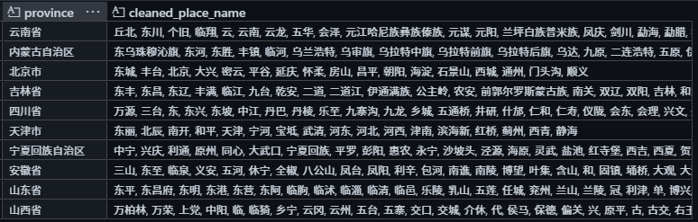 接着我构建了一个省市区——省份的地名词典: