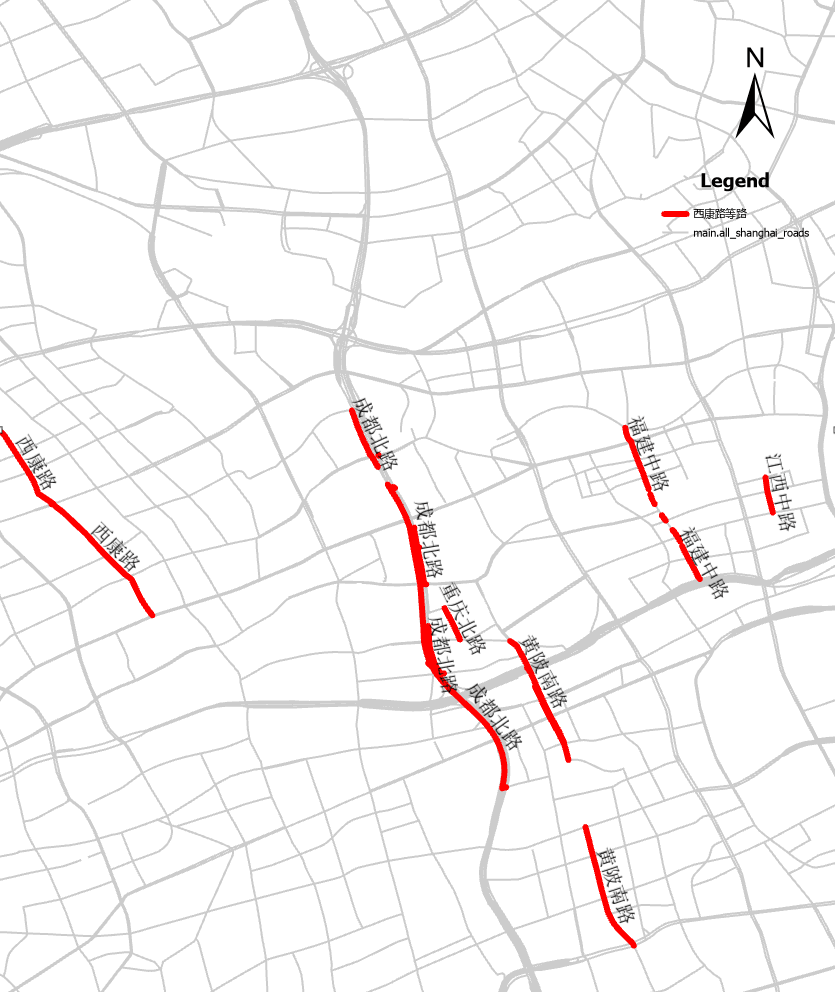 最初,我将每个省在上海的所有道路视为一个整体,计算出一个“代表点”。这确实绘制出了一幅粗略的“中国地图”,但这种简化也隐藏了太多细节。一个点,无法告诉我们这些来自同一个省的道路,在上海是紧密抱团,还是分散四方。