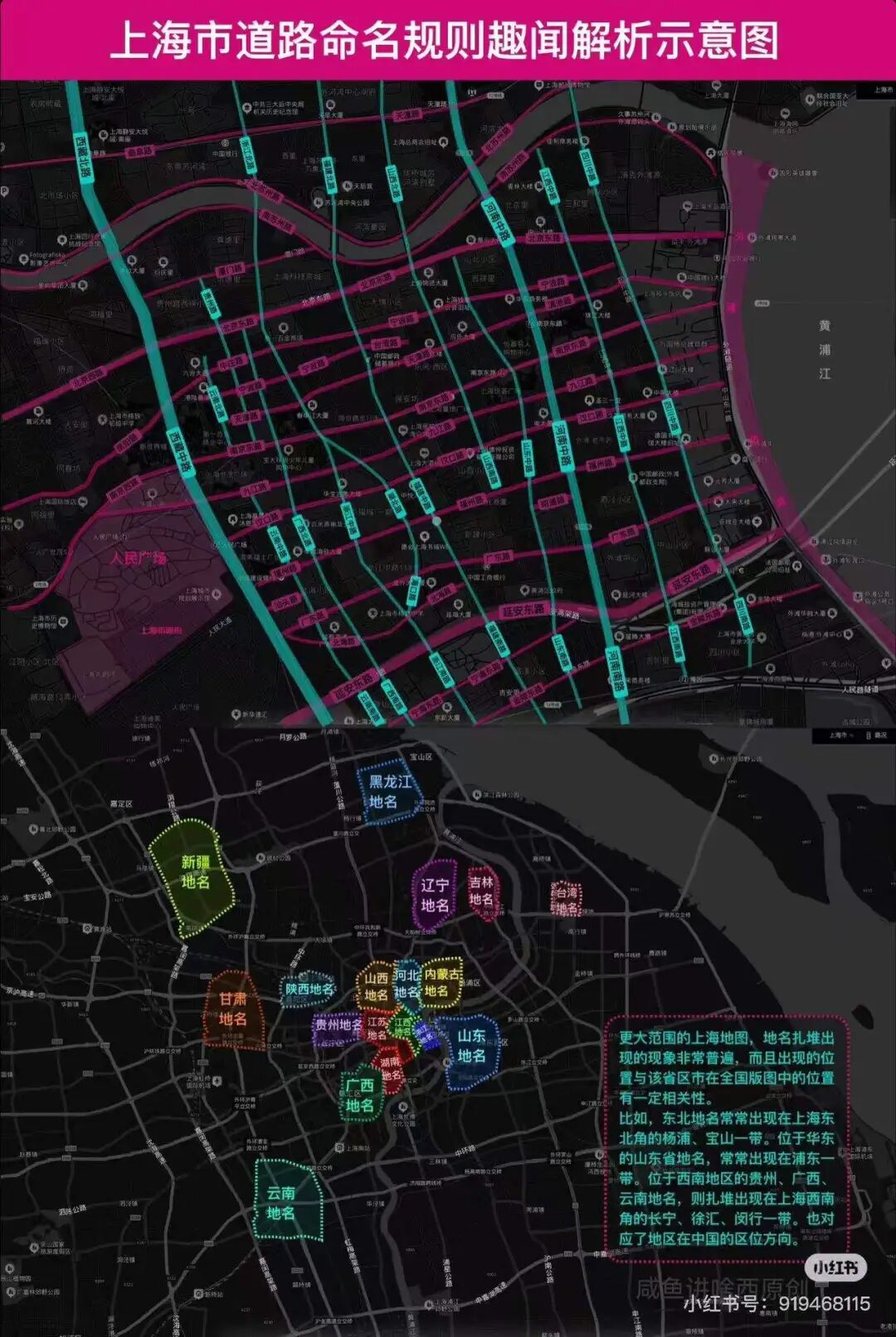 上海的“西康路”得名于中国原西康省,不过在 1955 年,西康省被撤销,其辖区分别并入四川省和西藏自治区 黄陂南路代表湖北省武汉市黄陂区:“黄陂南路”最初名为“贝勒路”,1943 年以湖北黄陂县(今武汉市黄陂区)命名为“南黄陂路”,1946 年正式定名为“黄陂南路”并沿用至今。