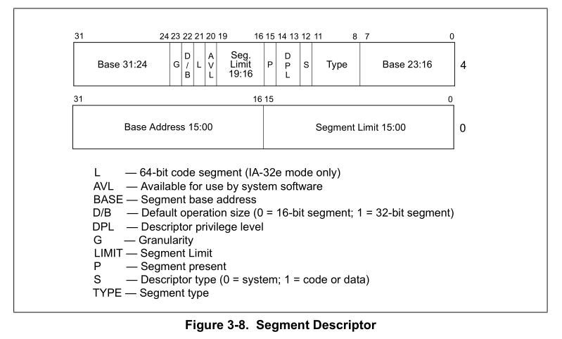 这里给出 段描述符 和 段选择子的结构,结构如下: