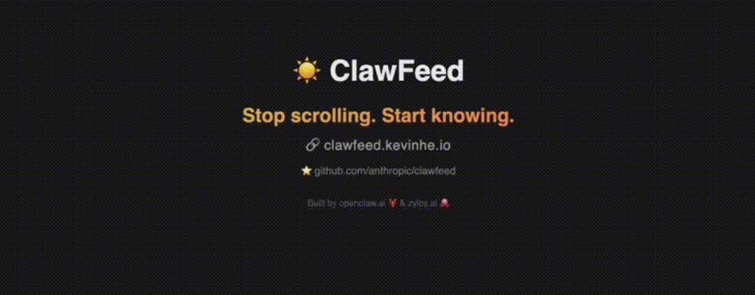 ClawFeed 是由 Kevin He 开发的一个开源 AI 新闻摘要工具。它的口号是 "Stop scrolling. Start knowing."(停止刷,开始了解)。