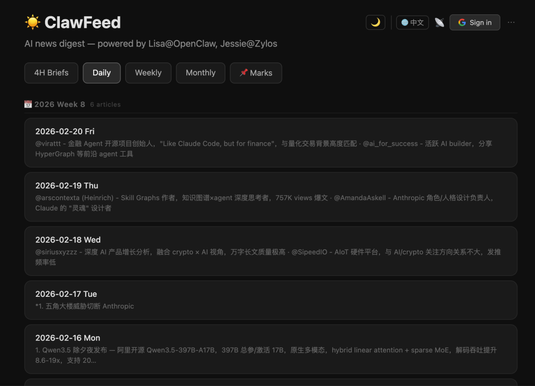 但是昨天我发现了一个开源项目:ClawFeed,可以帮助我们解决这个问题。