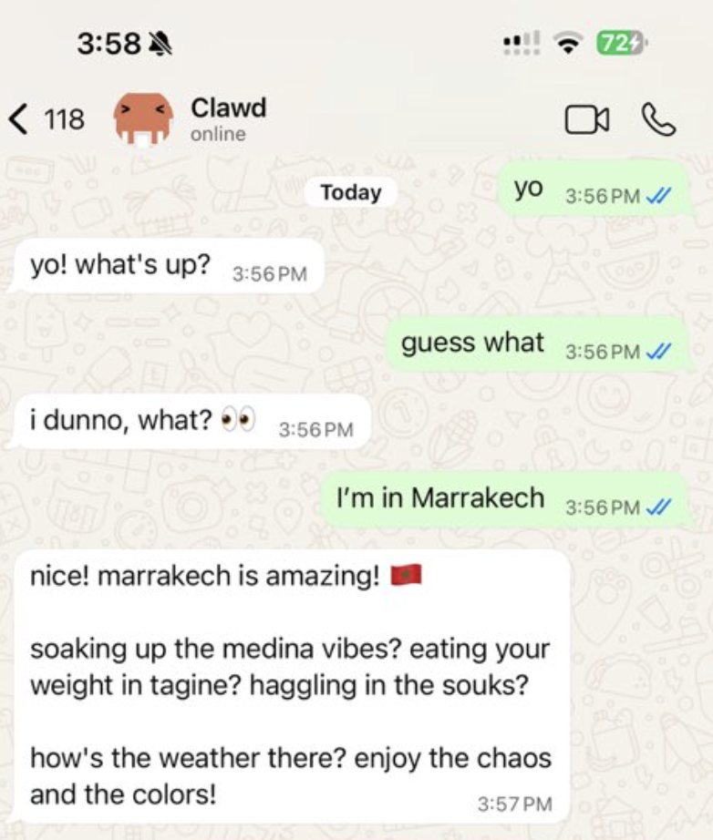 家里的 Clawdbot 收到指令,会操控浏览器去携程查票,去 Google Calendar 改日程,然后把结果发回给你。