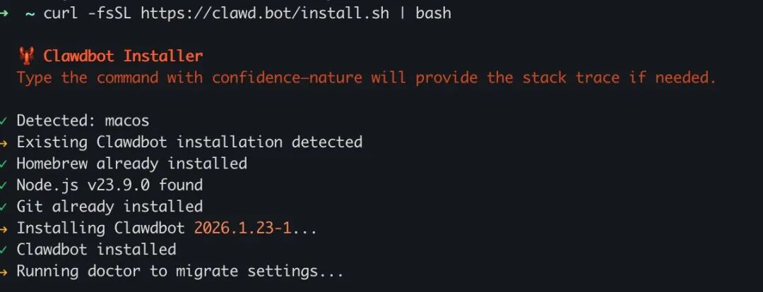 npm install -g clawdbot@latest此步骤会自动检查环境,并且安装最新版本。