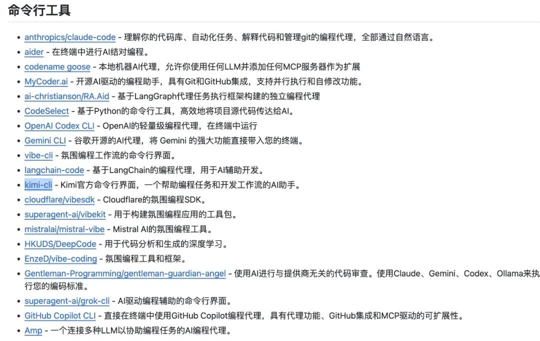 包括当下最热的 claude-code、Gemini CLI、kimi-cli 等。