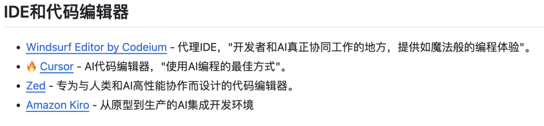 包括最为火热的 Cursor、Windsurf、Zed 等。
