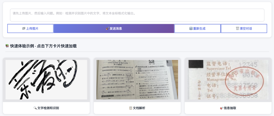 更有现成在线 Demo 可直接体验,只需上传图片 + 输入问题即可使用。