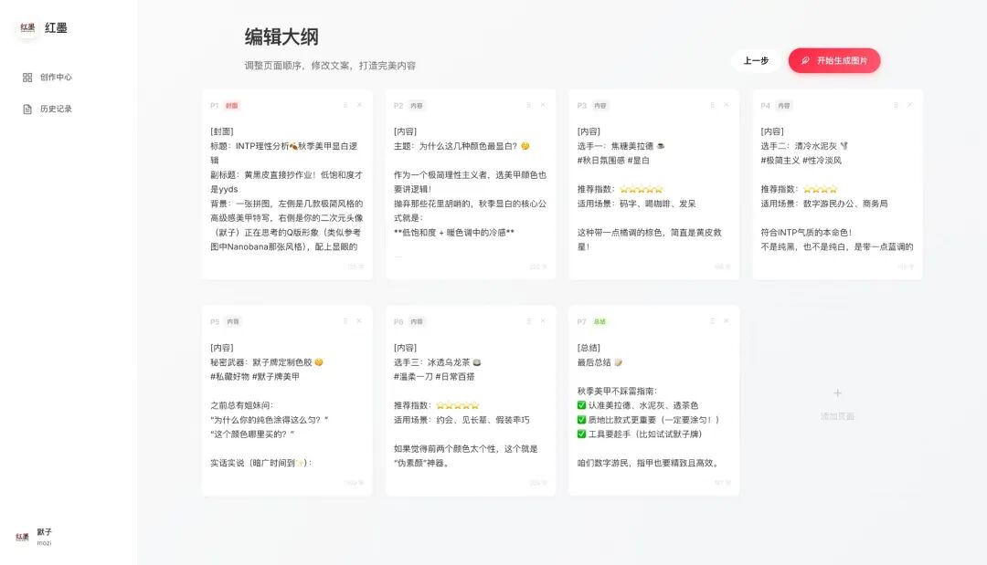 它不像以前的工具,只给你生成文字或者只给你生成图片。它把「文案策划」和「视觉设计」这两个完全不同的工种,通过 AI 完美地缝合在了一起。
