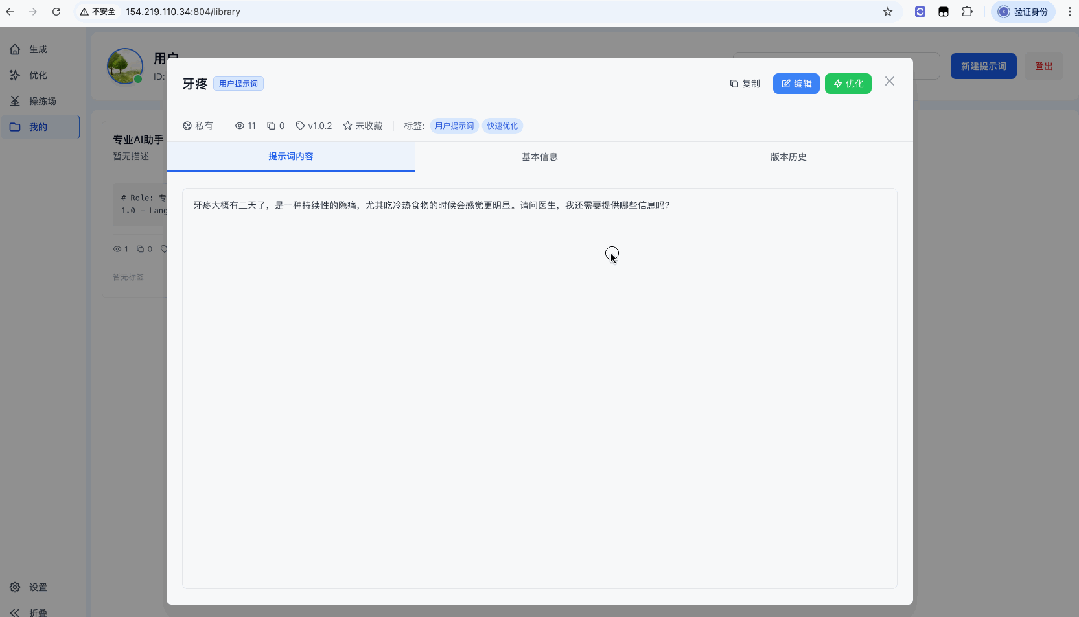 你不仅能更快写出高质量 Prompt,还能长期复用、分类、优化、对比、回滚。