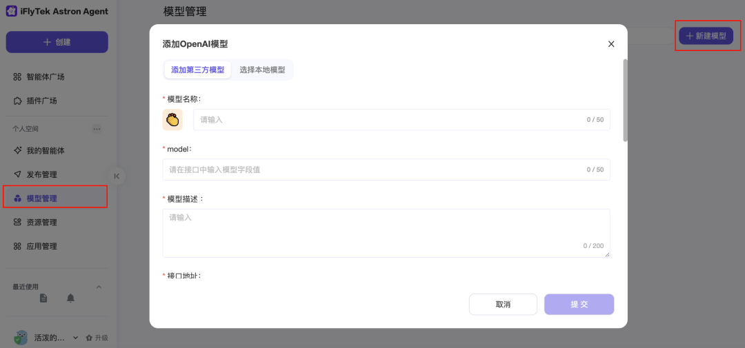 在正式使用 Astron-Agent 之前,我们还需要添加大模型,才能正常使用。
