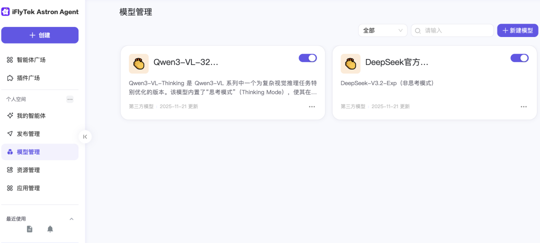 点击『提交』,就能看到刚提交的模型已经添加成功了,后续在构建智能体/工作流时就能使用该模型了。