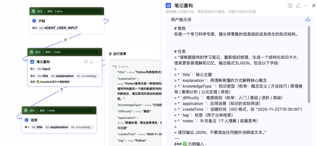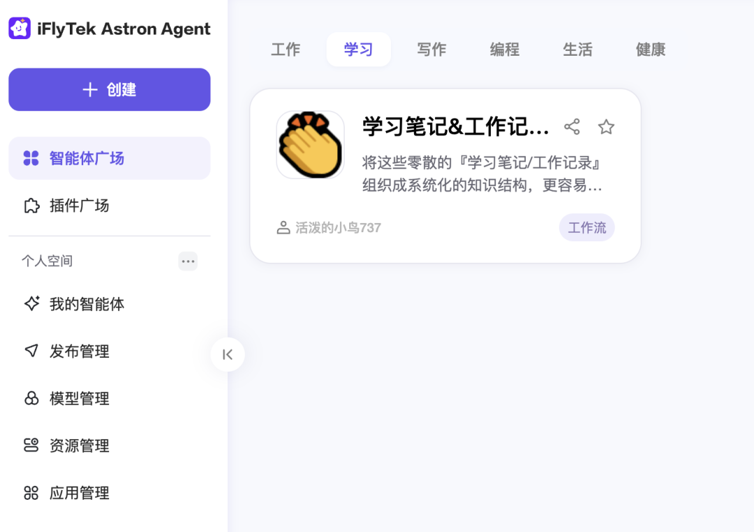 这里就借助 Astron Agent 平台 帮助我们搭建一个学习笔记&工作记录整理为结构化知识卡片的工作流。